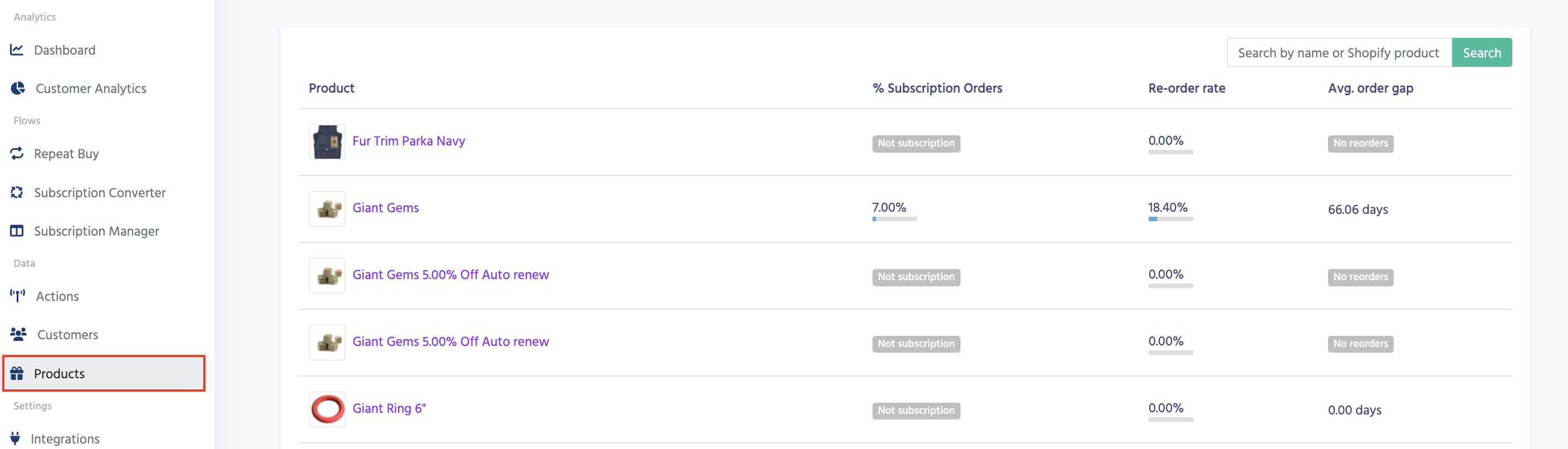 - Head to the Products section of the app and find the product you would like to pin.