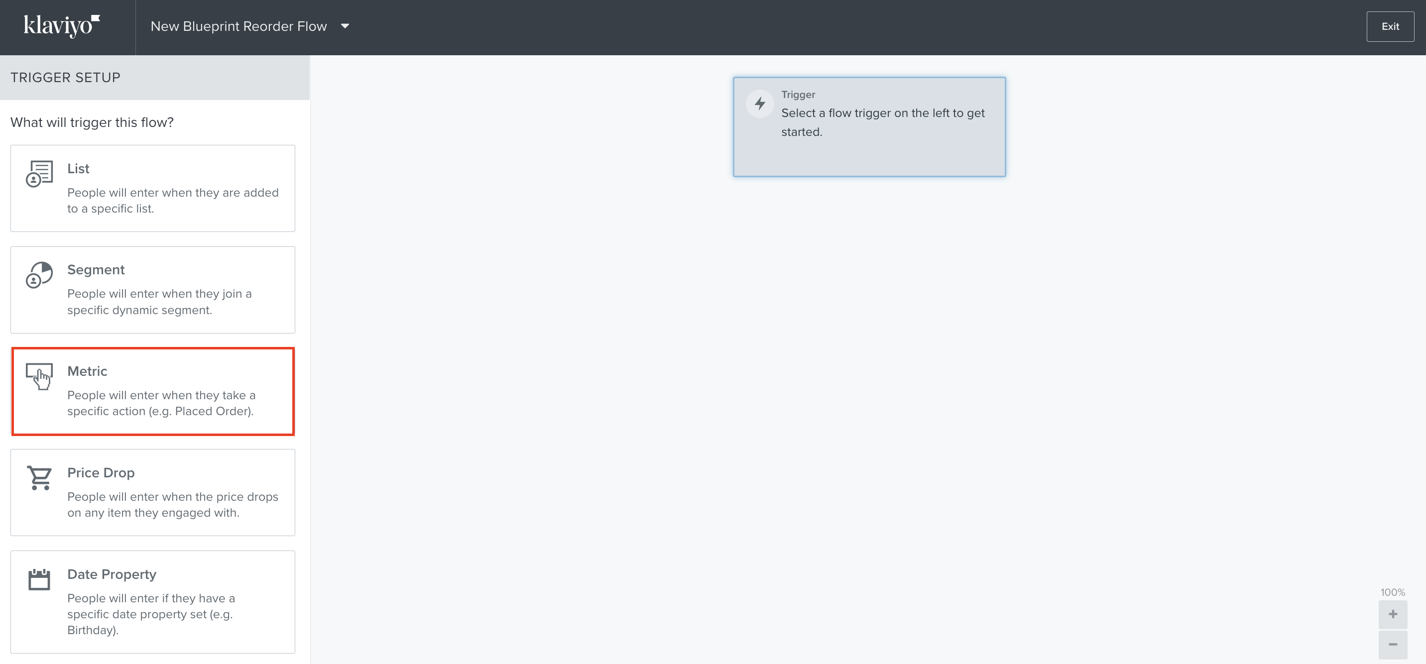 If you already have a reorder flow setup you will need to duplicate this flow to be able to change the trigger using these instructions.