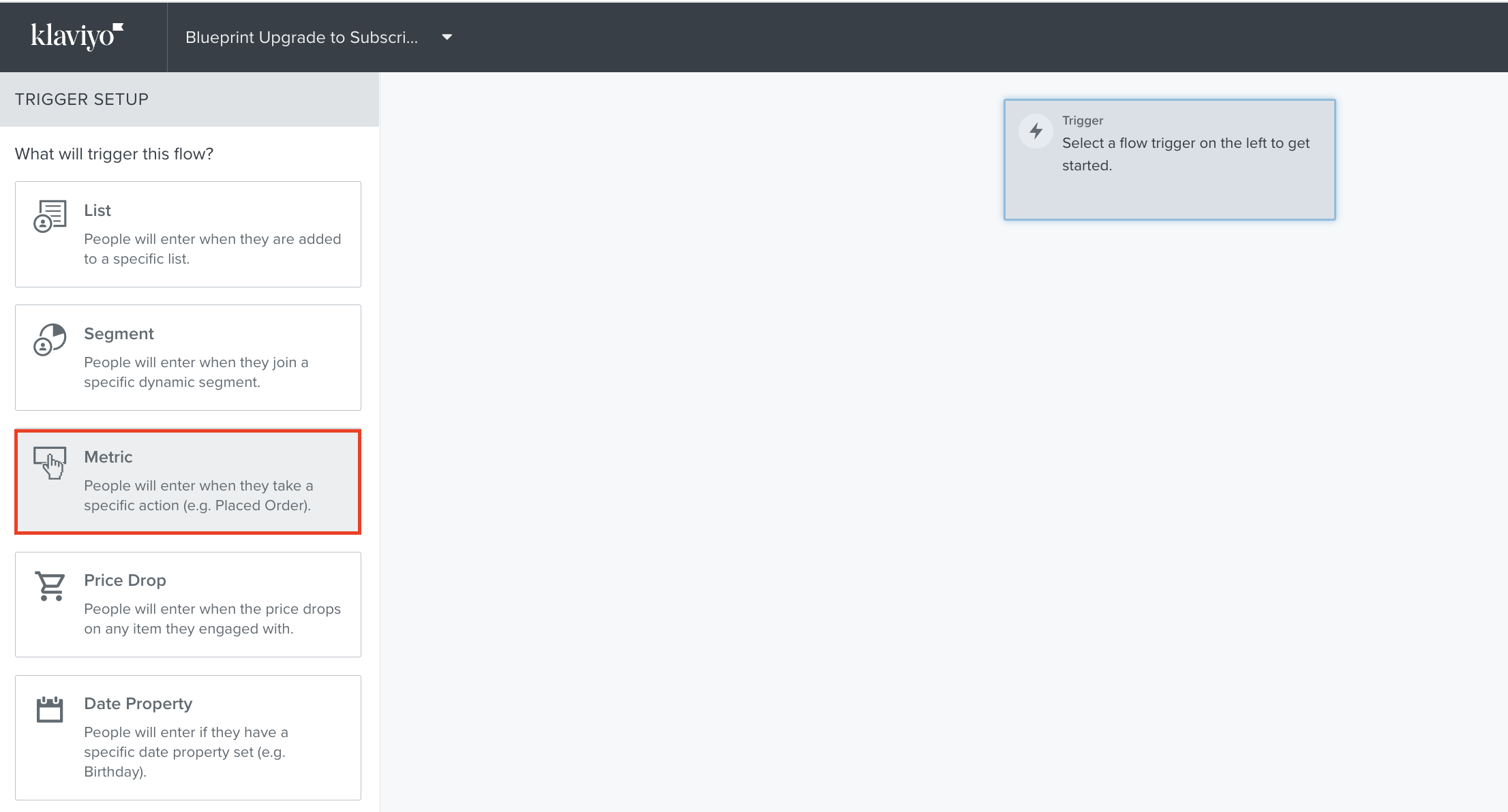 If you already have a subscription flow setup you will need to duplicate this flow to be able to change the trigger using these instructions.