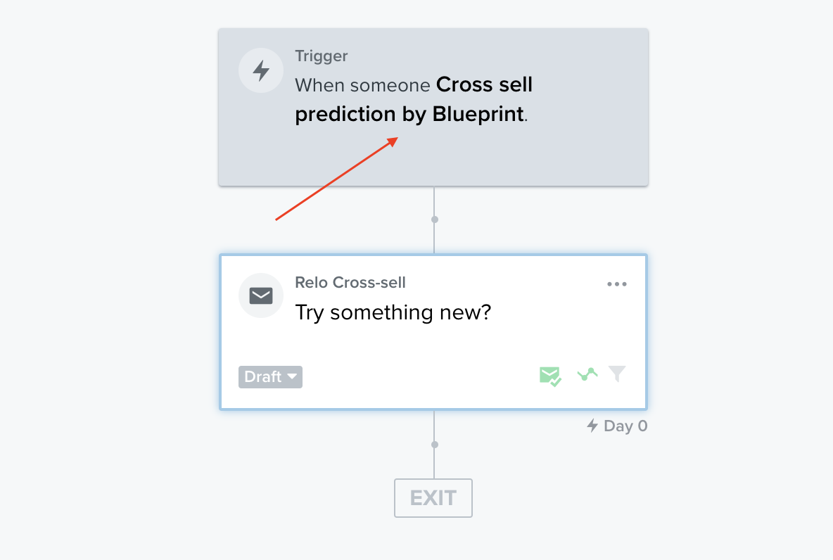 - After this trigger is added you can then create the content for the cross-sell email. This email should be sent immediately after the trigger. This is because Relo calculates a customised time period based on the individual purchase history of each customer.